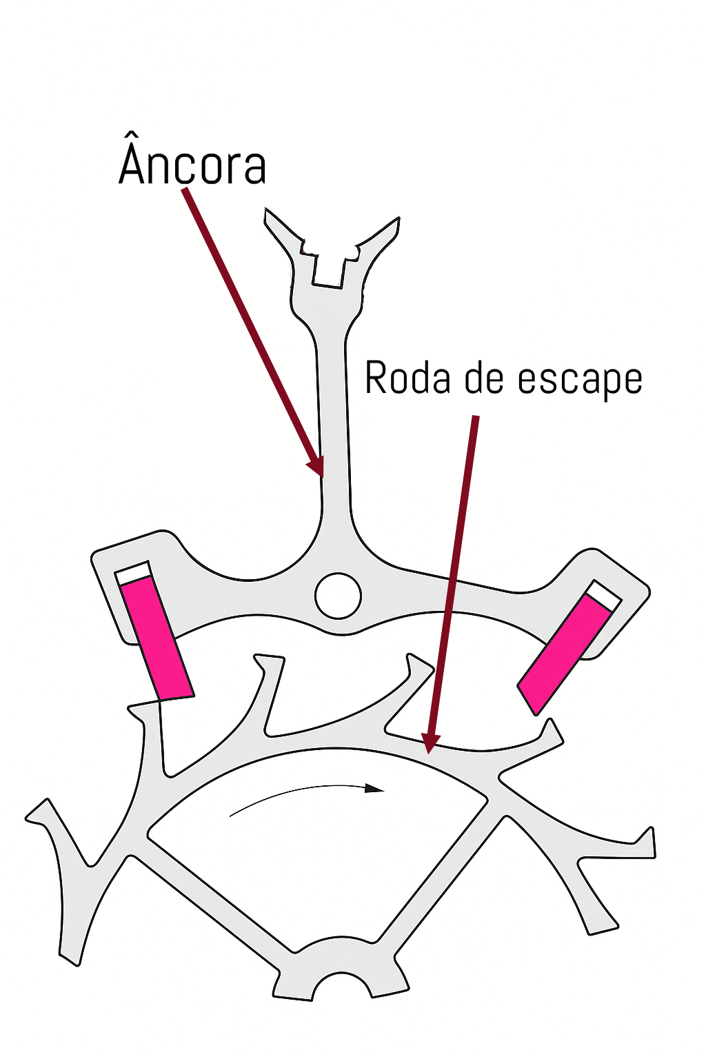 Peça essencial do escapamento que alterna entre travar e liberar o movimento da roda de escape. Também transmite impulso à roda do balanço a cada desengate de suas levées com os dentes da roda de escape. (vide imagem)