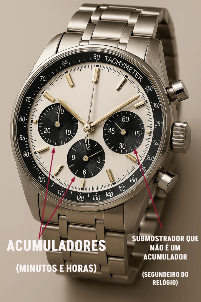 Geralmente é representado no mostrador por um ou dois submostradores, chamados de acumuladores.