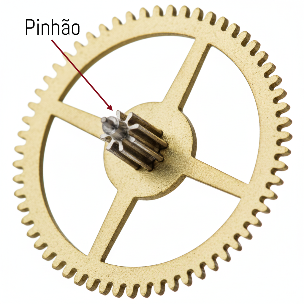 É um tipo de engrenagem com um número menor de dentes, geralmente em formato cilíndrico. Atua na conexão entre as rodas, dividindo ou multiplicando a velocidade de rotação. Por exemplo, quando uma roda grande se conecta a um pinhão pequeno isso gera multiplicação de velocidade e redução de força.